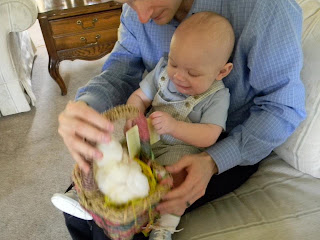 But what felt different was my husband and I purposefully veering from that (somewhat) steadfast course to blaze a trail of our own. We put together an extremely adorable and age appropriate Easter Basket for G (no candy, not even for ourselves. Sacrifice.) and propped him up in the high chair as we excitedly pulled out each item for him. Little Man was totally unimpressed, but I snapped a few hundred pictures, anyway.